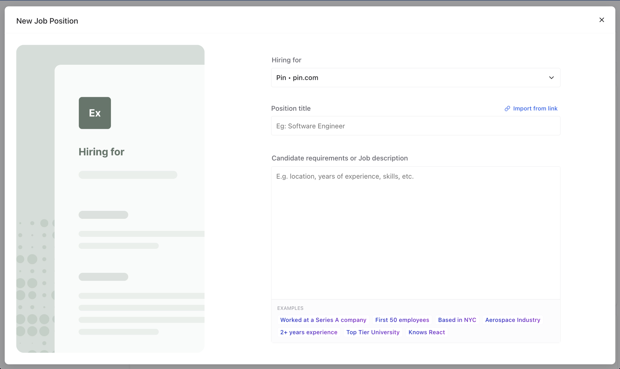 We've streamlined the job creation flow, so all fields now appear in a single window when adding the job title, description, or importing a job from a link. In just a few clicks, you can source candidates quickly and easily. Just paste a job description.