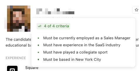 Pin will evaluate every candidate for the requirements you’ve requested and give you a detailed explanation on why the candidate fits the role.